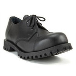 Short 3-eye BLACK boots, so called "steel caps", made of natural cowhide. Polish production. Triple seams. Screwed, rubber outsole. Steel reinforcements in the toes of the shoes. The highest quality of materials and workmanship guarantee long usage