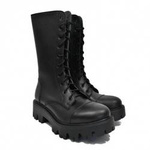 Middle high 10-eye WHITE-BLACK boots, "steel caps", made of natural cowhide. Polish production. Triple seams. Screwed, rubber outsole. Steel reinforcements in the toes of the shoes. The highest quality of materials and workmanship guarantee long usage