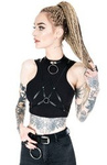 Black, witchy, gothic tank top. Made of soft bengaline. Front is decorated with harness straps and ring collar. Hidden zipper on the back. Wear it with plain black pants for everyday look, or with our matching Villian Skirt for night out look!