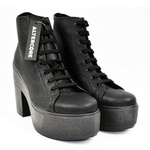 Short 3-eye BLACK boots, so called "steel caps", made of synthetic leather. "Animal Friendly Line". Polish production. Glued and screwed, rubber outsole. Steel reinforcements in the toes of the shoes. The highest quality.