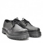 Short 4-eye BLACK boots, so called "steel caps", made of natural cowhide. Polish production. Triple seams. Screwed, rubber outsole. Steel reinforcements in the toes of the shoes. The highest quality of materials and workmanship guarantee long usage.