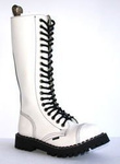 High 20-eye WHITE boots, so called "steel caps", made of natural cowhide. Polish production. Triple seams. Screwed, rubber outsole. Steel reinforcements in the toes of the shoes. The highest quality of materials and workmanship guarantee long usage.