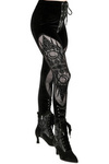 Gothic velvet leggings with a mesh with the fortune teller pattern. An ultra-feminine and comfortable garment. A very high waist, and thanks to the translucent inserts on the knees. Made of black velvet fabric. Velvet and mesh (100% polyester)