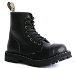 Middle high 8-eye BLACK boots, so called "steel caps", made of natural cowhide. Polish production. Triple seams. Screwed, rubber outsole. Steel reinforcements in the toes of the shoes. The highest quality of materials and workmanship guarantee long usage,