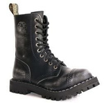 Middle high 10-eye BLACK boots, so called "steel caps", made of natural cowhide. Polish production. Triple seams. Screwed, rubber outsole. Steel reinforcements in the toes of the shoes. The highest quality of materials and workmanship guarantee long usage