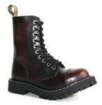Middle high 10-eye BURGUNDY-BLACK boots, so called "steel caps", made of natural cowhide. Polish production. Triple seams. Screwed, rubber outsole. Steel reinforcements in the toes of the shoes. The highest quality of materials and workmanship.