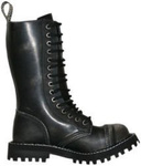 High 15-eye BLACK boots, so called "steel caps", made of natural cowhide. Polish production. Triple seams. Screwed, rubber outsole. Steel reinforcements in the toes of the shoes. The highest quality of materials and workmanship guarantee long usage.