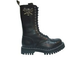 High 15-eye BLACK with big skull boots, so called "steel caps", made of natural cowhide. Polish production. Triple seams. Screwed, rubber outsole. Steel reinforcements in the toes of the shoes. The highest quality of materials and workmanship.
