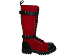 High 20-eye RED-BLACK zippered with buckles boots, so called "steel caps", made of natural cowhide. Polish production. Triple seams. Screwed, rubber outsole. Steel reinforcements in the toes of the shoes. The highest quality of materials and workmanship.