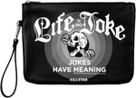 Super cute 'Life Is No Joke' makeup bag- ideal for traveling or storing yer fav must-haves. A high-grade faux leather body with zip closure and inside pocket, bold contrast motif on the front and handy wrist strap [detachable].