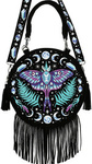 Magical round bag with moon moth, moon phases and tessels motive. Crafted from plush velvet. An adjustable strap decorated with intricate embroidery. Composition: velvet (100% polyester). Width: 30cm, Height: 30 cm, Bottom width: 11 cm