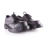 Short 3-eye BLACK boots, so called "steel caps", made of natural cowhide. Polish production. Triple seams. Screwed, rubber outsole. Steel reinforcements in the toes of the shoes. The highest quality of materials and workmanship guarantee long usage.