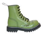 Middle high 10-eye KHAKI boots, so called "steel caps", made of natural cowhide. Polish production. Triple seams. Screwed, rubber outsole. Steel reinforcements in the toes of the shoes. The highest quality of materials and workmanship guarantee long usage