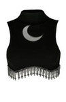 Gothic crop top, crafted from soft and stretchy cotton, the fitted turtleneck top ensures a comfortable and pleasant experience. The captivating design at the chest level features a mesh crescent, infusing an air of subtle charm and mysterious allure.