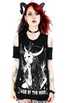 Black gothic t-shirt with choker, printed cats and witch. T-shirt made in Poland. Made of 100% strong cotton 100%. Elegant design of choker v-neck suits perfectly the unique and dark printing design. You can interpret the graphic in two ways.