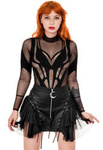 Gothic, black mesh hawkmoth bodysuit. The turtleneck stretches, to pass freely over your head. The bodysuit is fastened at the bottom. Composition: 90% nylon and 10% spandex. The print is a true work of art and it looks like tattoos.