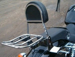 Oparcie pasażera do HONDA VT 750 C2 SHADOW SPIRIT (RC53 od 2007r). Wykonane ze stalowego chromowanego profilu/płaskownik. Pokrycie galwaniczne to miedź, nikiel i chrom. Poduszka wykonana z mocnego obicia tapicerskiego kształt do wyboru (elipsa lub wąska).