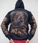 Markowa rozpinana bluza z kapturem firmy BLACK HEART. Mocno podkreśli Twoją osobowość i styl życia. Duży nadruk na plecach, rękawach i z przodu. Bluza w motocyklowo-rockowym klimacie. Skład 70% bawełna, 30% polyester. Made in Hell. Tylko w metalRoute.