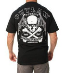 Markowa koszulka motocyklowa i rockowa amerykańskiej firmy OUTLAW THREADZ. Amerykańska jakość, styl i sznyt. Ten import zza oceanu dostępny w Polsce jedynie w sklepie rockowym metalRoute. 100% bawełna. Piękna CZACHA z tyłu, z frontu mega logo OUTLAW.