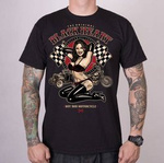 Damska koszulka rockowo-motocyklowa. Duża grafika na przodzie. Seksowne wycięcia na ramionach tzw. "cold shoulders". Made in Hell. Skład 100% miękkiej bawełny. W Polsce dostępna tylko w sklepie rockowym metalRoute.