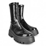 Czarne, zapinane na suwak botki na platformie, wykonane z wysokiej jakości wegańskiej skóry. Znakomite uzupełnienie rockowych stylizacji. Podeszwa 4 cm. Lakierowana cholewka. Produkcja polska. Najwyższa jakość użytych materiałów gwarantuje długie używanie