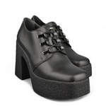 Czarne, sznurowane trzewiki na platformie, wykonane z wysokiej jakości wegańskiej skóry. Znakomite uzupełnienie rockowych stylizacji. Podeszwa 3-5 cm. Produkcja polska. Najwyższa jakość użytych materiałów gwarantuje długie używanie