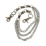 Markowy łańcuch do spodni niemieckiej firmy ROCK DADDY. Obowiązkowy dodatek stylistyczny dla rasowego bikera. Produkty ROCK DADDY w Polsce dostępne w rockowym sklepie metalRoute. Łańcuch metalowy. 3 połączone łańcuchy zakończone po obu stronach czachami.