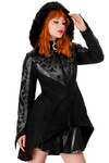 Zimowy gotycki płaszcz wykonany ze sztucznego zamszu, podszyty imitacją futerka,