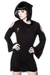 Delikatny aksamit opływa ciało a pentagram chroni duszę. Jesteś królową demonów, ale zachowaj to w sekrecie. Piękna, odważna sukienka z "wmontowanym" pentagramem i suwakiem z tyłu. Prać delikatnie, skład 95% poliester, 5% elastan.