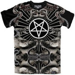Sssssssick.... SERPENTINE. Energia węża. Wesssssij ją. Koszulka tzw FULL PRINT z cyfrowym nadrukiem z przodu i na rękawach, z wszytą markową etykietką Killstar. Wykonana w 100% z czystej bawełny o gramaturze 165 g/m². Model dla NIEGO i dla NIEJ.