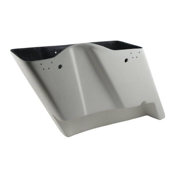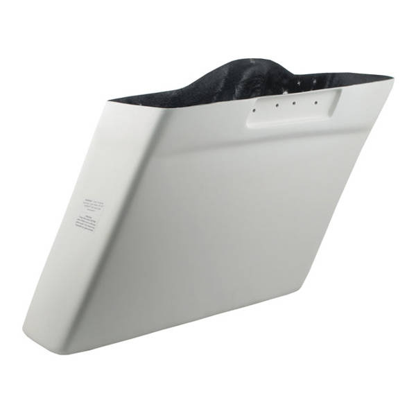 Fits to 80-13 FLT/Touring & custom applications.With no exhaust cut-out. Extended stretched saddlebag, used as a direct replacement for Touring hard bags. Saddlebag is fiberglass gel coated bottom ends only, it will take stock HD lids and hardware. RIGHT