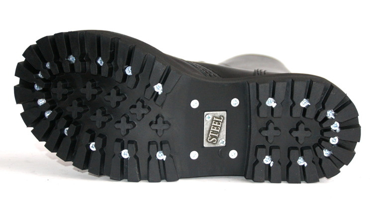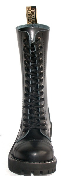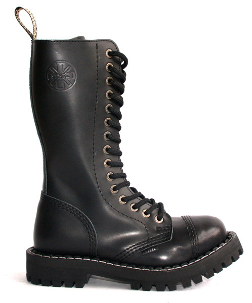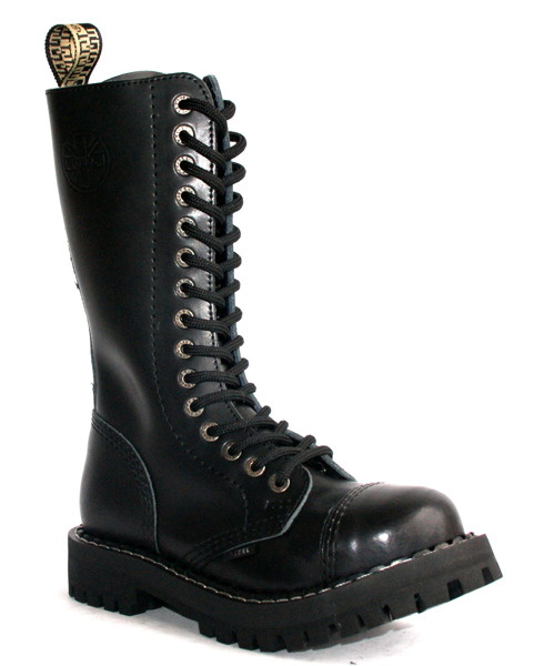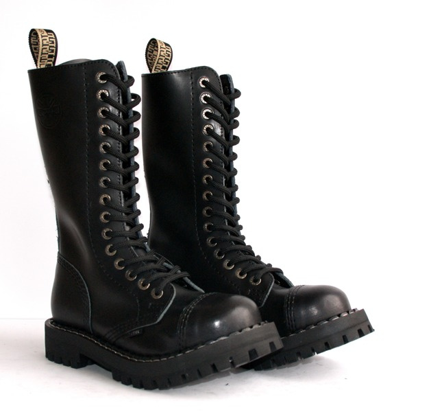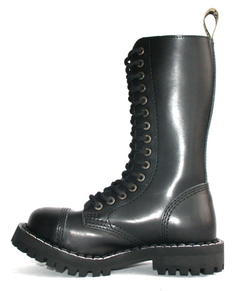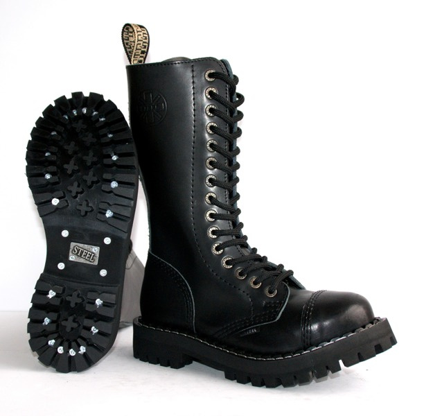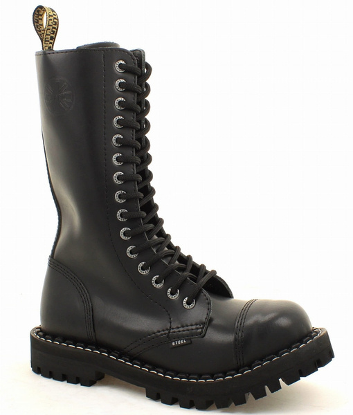 • High 15-eye BLACK boots, so called "steel caps", made of natural cowhide. Polish production. Triple seams. Screwed, rubber outsole. Steel reinforcements in the toes of the shoes. The highest quality of materials and workmanship guarantee long usage.