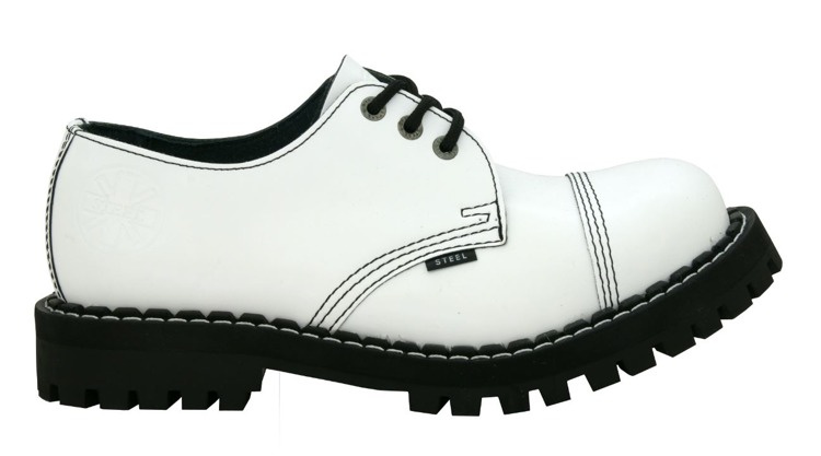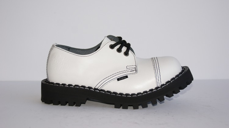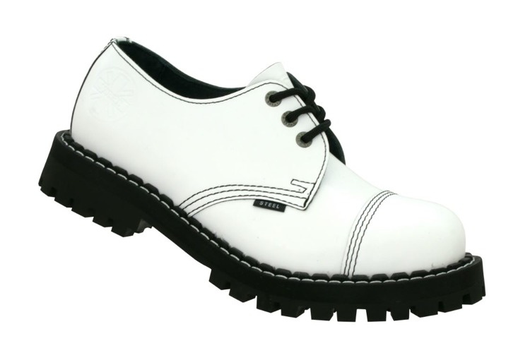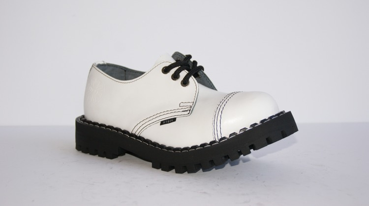 • Short 3-eye WHITE boots, so called "steel caps", made of natural cowhide. Polish production. Triple seams. Screwed, rubber outsole. Steel reinforcements in the toes of the shoes. The highest quality of materials and workmanship guarantee long usage.