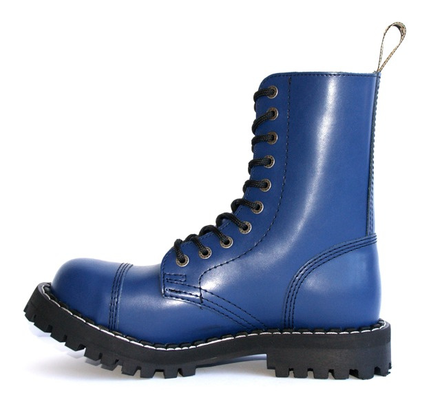 • Middle high 10-eye BLUE boots, so called "steel caps", made of natural cowhide. Polish production. Triple seams. Screwed, rubber outsole. Steel reinforcements in the toes of the shoes. The highest quality of materials and workmanship guarantee long usage