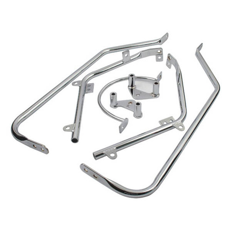 Fits to: 04-13 Sportster; 08-11 883 Custom, 883R Custom, 1200 Roadster 1200 Low and Super Low (NU). Allows installation of 98-13 style B.T. hard bags to your Sportster. Quality steel, chromed. Note: Passenger footpeg relocation required.