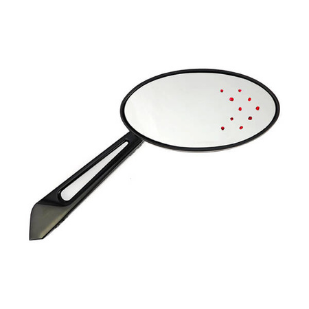 BLACK; 12V WITH AMBER LENS REAR / RED LEDS BEHIND GLASS FRONT; DIMENSIONS MIRROR HEAD 135MM WIDE X 70MM HIGH