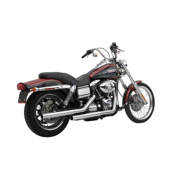 Chrome. Serious performance, without breaking the bank. Straightshots Slip-On mufflers will offer the same great look, finish and sound, just like any genuine Vance & Hines exhaust system. The 2 1/2" diameter heat shields are 220° cut to provide you with an virtually invisible heat shield that offers years of blue-free chrome. Baffles and mounting hardware is included for a hassle-free installation. Note: Will fit 10-16 European Dyna models, but will require separate purchase of OEM mounting bracket 65946-07. Note: Will not fit 2017 model year Dyna HDI (H-D International / EU models). These come with thinner ending header pipes and US slip-on mufflers will therefore not fit. Note: See 981423 for optional quiet baffle. Note: See 559171 for optional extra quiet 'Super Q' baffle.