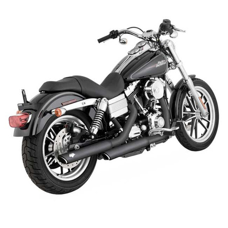 Matte black ceramic with chrome end treatment. One of the best ways to ease into customizing is with the addition of a slip-on muffler set. These Twin Slash Rounds mufflers will give the unmistakable Vance & Hines look and open up the performance potential of your bike and ready for later engine upgrades, if desired. The low restriction louvered core baffles are pre-installed. Included are virtually invisible 3 inch full coverage heat shields which makes the 2-1/2" diameter muffler bodies blue-proof. Note: Will not fit 2017 model year Softail HDI (H-D International / EU models). Only this years comes with thinner ending header pipes and regular US style slip-on mufflers will therefore not fit. Note: See 568712 for stock replacement baffle. Note: See 981790 for competition baffle (+2 to +3 dB). Note: See 981791 for optional quiet baffle (-3 to -4 dB).