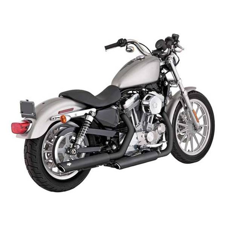 Matte black ceramic with chrome end treatment. One of the best ways to ease into customizing is with the addition of a slip-on muffler set. These Twin Slash Rounds mufflers will give the unmistakable Vance & Hines look and open up the performance potential of your bike and ready for later engine upgrades, if desired. The low restriction louvered core baffles are pre-installed. Included are virtually invisible 3 inch full coverage heat shields which makes the 2-1/2" diameter muffler bodies blue-proof. Note: See 568712 for stock replacement baffle. Note: See 981790 for competition baffle (+2 to +3 dB). Note: See 981791 for optional quiet baffle (-3 to -4 dB).