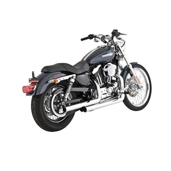 Chrome. Designed to meet the demand for the classic lines of a staggered exhaust system. This HS version comes in 2 1/2" diameter and complete with plasma arc cut, almost invisible, full coverage heat shields for headers and mufflers. Impressive performance & the true deep hot rod sound is yours. Includes removable baffles. Note: See 981423 for optional quiet baffle. Note: See 559171 optional extra quiet 'Super Q' baffle.
