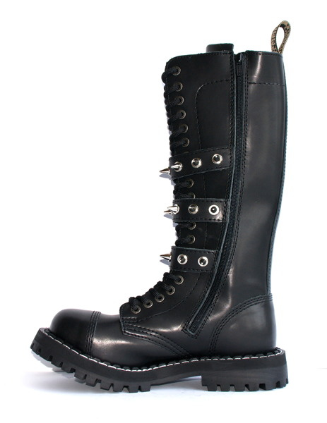 • High 20-eye BLACK zippered with buckles boots, so called "steel caps", made of natural cowhide. Polish production. Triple seams. Screwed, rubber outsole. Steel reinforcements in the toes of the shoes. The highest quality of materials and workmanship.