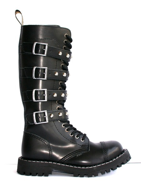 • High 20-eye BLACK zippered with buckles boots, so called "steel caps", made of natural cowhide. Polish production. Triple seams. Screwed, rubber outsole. Steel reinforcements in the toes of the shoes. The highest quality of materials and workmanship.