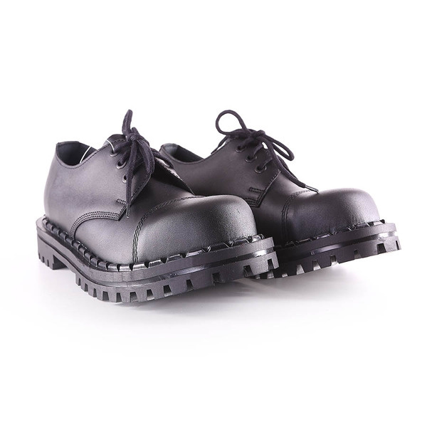 • Short 3-eye BLACK boots, so called "steel caps", made of natural cowhide. Polish production. Triple seams. Screwed, rubber outsole. Steel reinforcements in the toes of the shoes. The highest quality of materials and workmanship guarantee long usage.