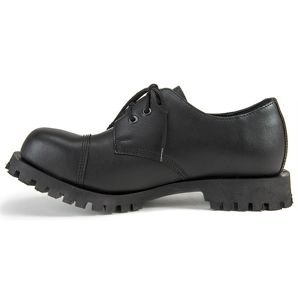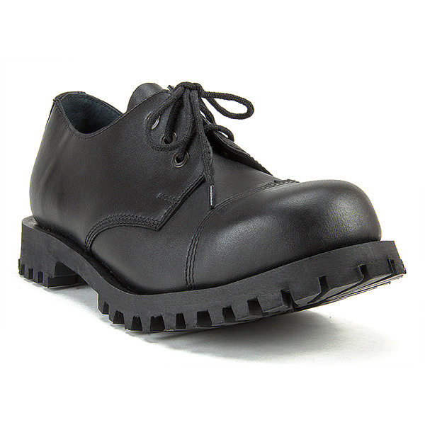 • Short 3-eye BLACK boots, so called "steel caps", made of synthetic leather. Polish production. Triple seams. Screwed, rubber outsole. Steel reinforcements in the toes of the shoes. The highest quality of materials and workmanship guarantee long usage.