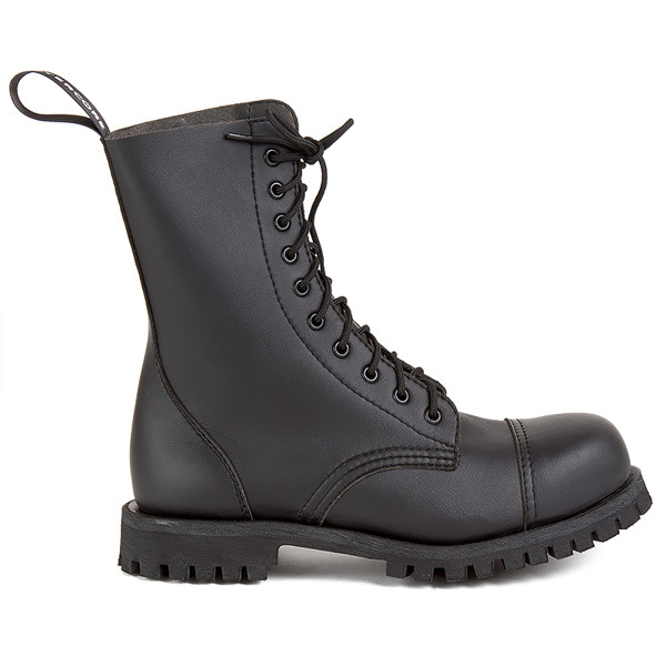 • Middle high 10-eye BLACK boots, so called "steel caps", made of synthetic leather. Polish production. Triple seams. Screwed, rubber outsole.Steel reinforcements in the toes of the shoes.The highest quality of materials and workmanship guarantee long usage