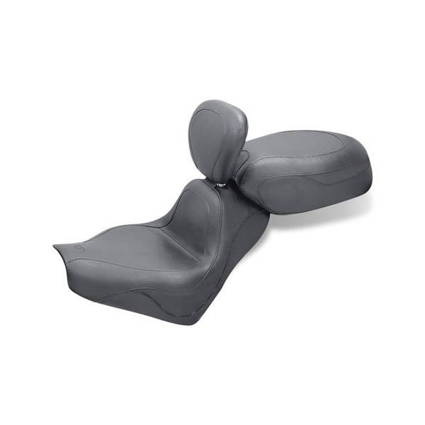 A 2-piece set with 16" wide front seat,12,5" wide rear seat and easy removable built-in driver backrest. Mustang's Sport Touring seats feature a sportier look than traditional touring seats, with a driver bucket that sits you at the ideal cruising angle at a similar reach to the controls compared to stock. The entire width of the comfortable rear seat is fully supported by Mustang's unique internal steel wings. Built on a marine-grade fiberflass baseplate, the two-piece Seat mounts just like stock.