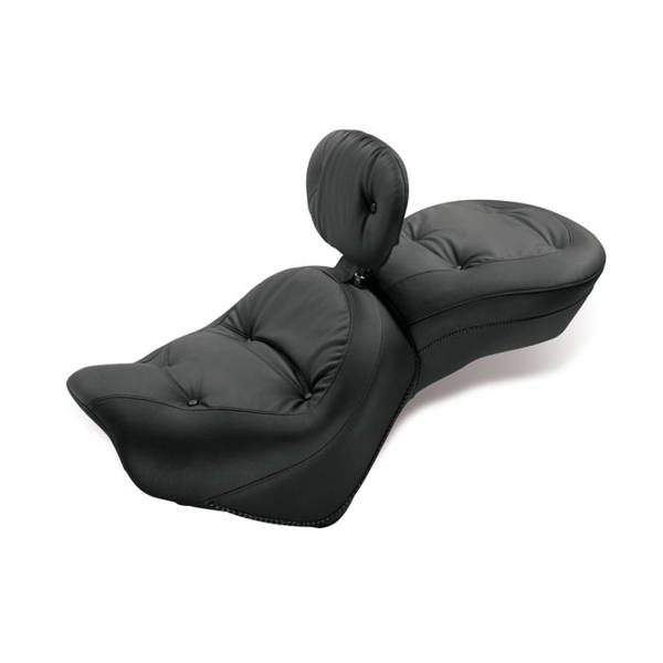 A plain touring seat with 18" wide rider area, 16,5" wide passenger area and fully adjustable, easily removable driver backrest. The Standard Touring platform features several design improvements over the stock seat. A deeply pocketed driver bucket sits you in the ideal cruising angle at a similar reach to the controls compared to stock.