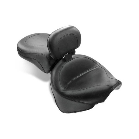 A plain touring seat with 17" wide passenger area, 12,5" wide passenger seat and fully adjustable, easy removable driver backrest. The Standard Touring platform features several design improvements over the stock seat. A deeply pocketed driver bucket sits you in the ideal cruising angle at a similar reach to the controls compared to stock.