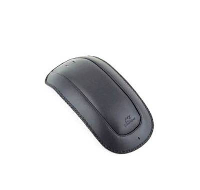 A handmade Fender Bib, made for use with a solo seat, that fits the fender perfectly, prevents damage to your bike and/or covers existing scratches on the fender with a soft, felt-liner backside that protects the paint. Installation by removing the seat, positioning the fender bib onto the fender and attaching the fender bib to the fender with the rear stock fender screw and the rear seat front mounting screw.