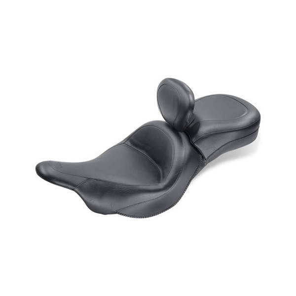 A plain touring seat with 16,5" wide rider area, 12,5" wide passenger area and fully adjustable, easily removable driver backrest. The Standard Touring platform features several design improvements over the stock seat. A deeply pocketed driver bucket sits you in the ideal cruising angle at a similar reach to the controls compared to stock.